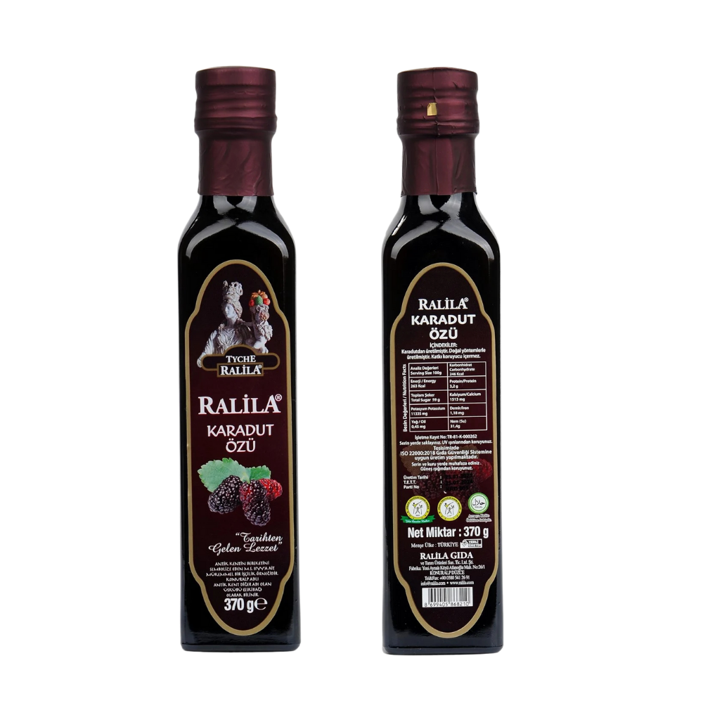 RALİLA Karadut Özü, hiçbir katkı maddesi, renklendirici veya koruyucu içermeden, geleneksel yöntemlerle hazırlanmış saf ve yoğun bir karadut özüdür. Karadutun kendine özgü aroması ve güçlü antioksidan özellikleri korunarak üretilen bu doğal öz, hem lezzetiyle hem de faydalarıyla öne çıkar.